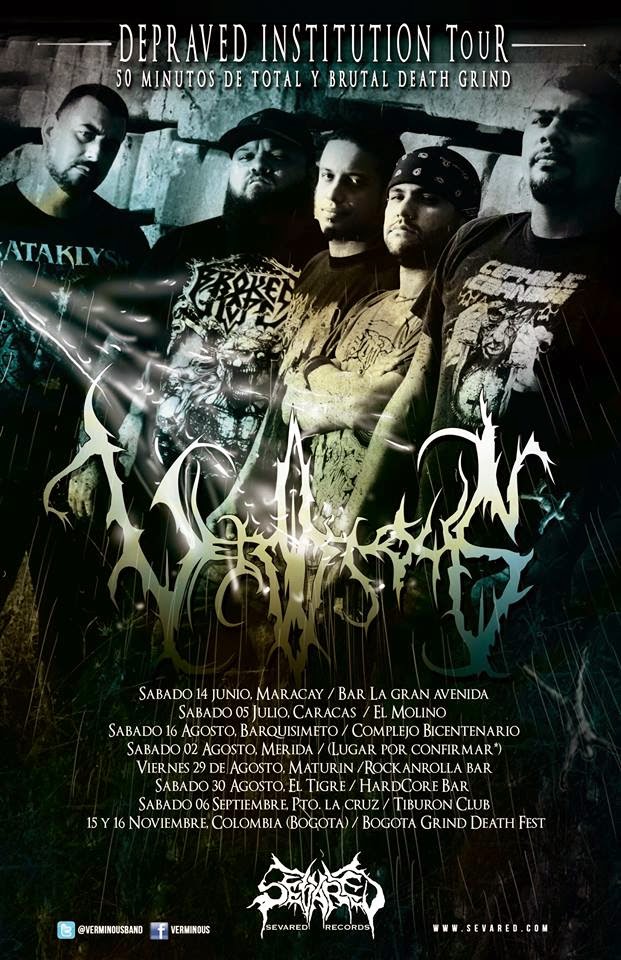 La banda de brutal death metal venezolana Verminous acaban de anunciar una serie de fechas de su gira "Depraved Institution Tour", 50 minutos de total y brutal death grind!.